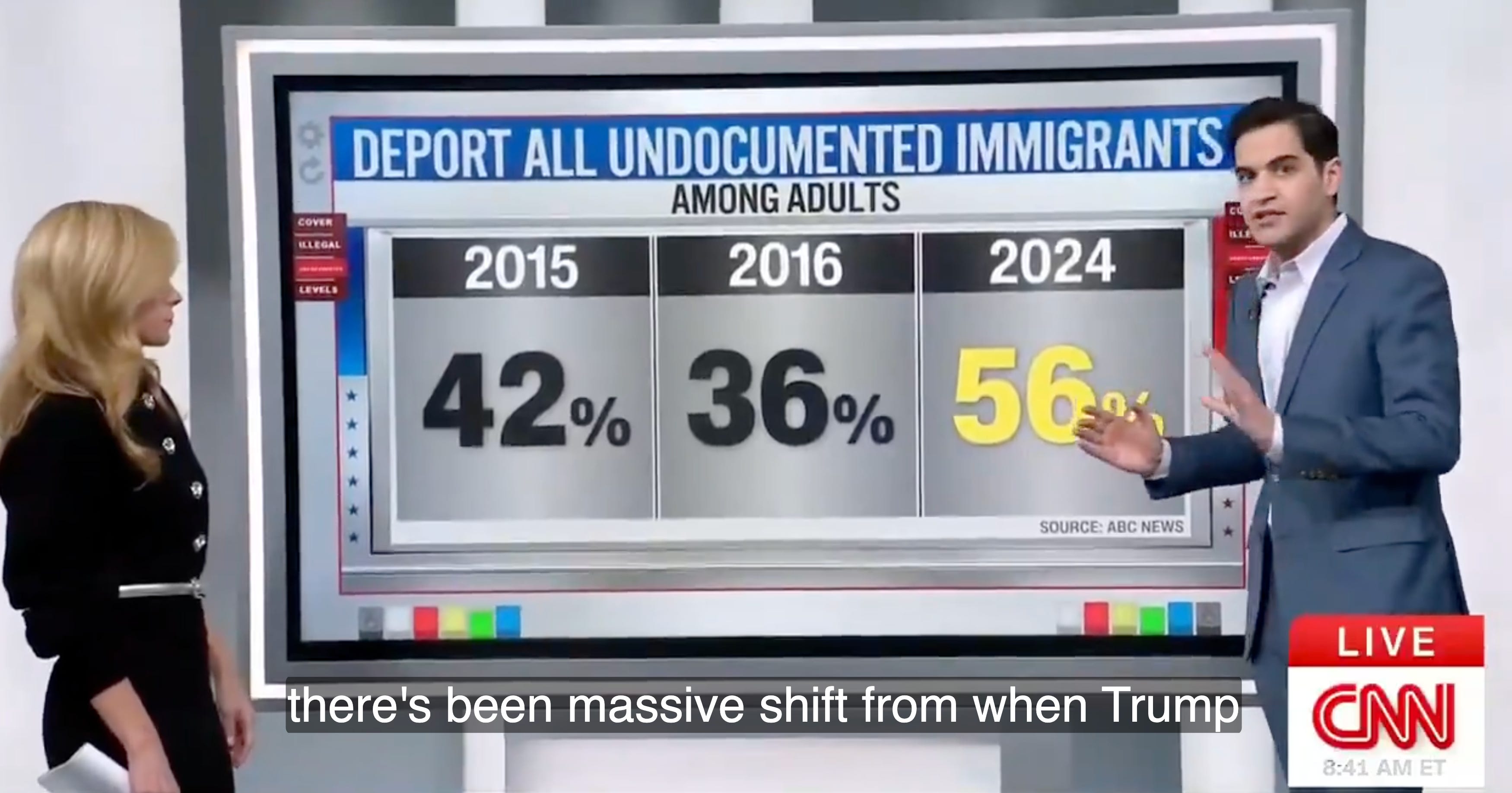Things were very different eight years ago. Right before Trump took office for his first term, ABC News found that only 36 percent of Americans backed the idea of mass deporting undocumented immigrants. But ABC’s pollsters revealed a 20 point swing in public sentiment in 2024. Now, 56 percent of their respondents favor mass deportation. How public opinion swung so severely isn’t a mystery to me.